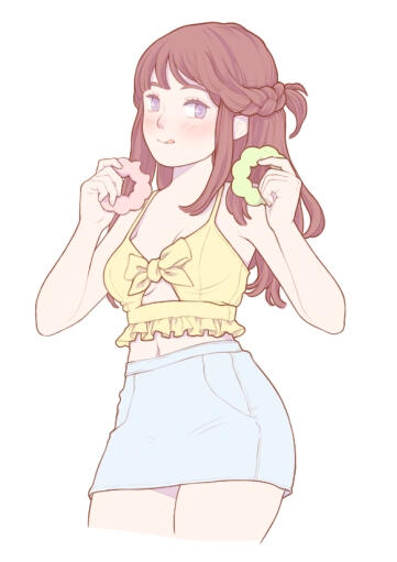 “Grass stains!” she declared, stretching her arms out triumphantly. It was true, her white sleeveless blouse and lime green shorts were clean.